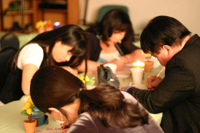 결혼교실 졸업생을 위해 축하송을 부르는 Jennifer Kang 자매