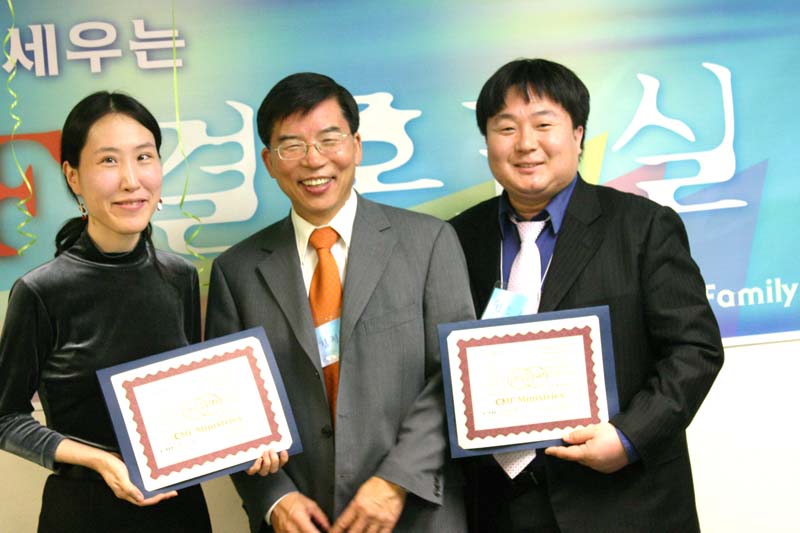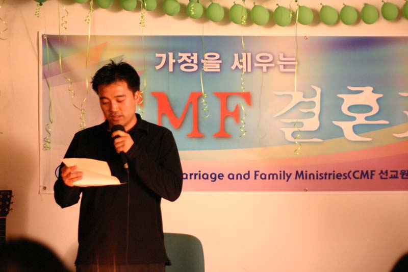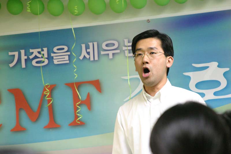결혼교실 졸업생을 위해 축하송을 부르는 정헌표 전도사