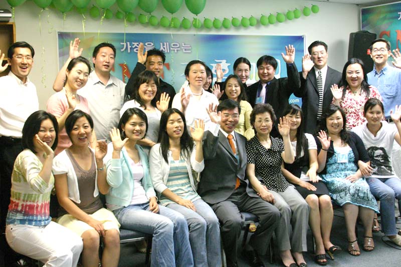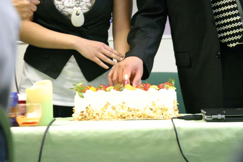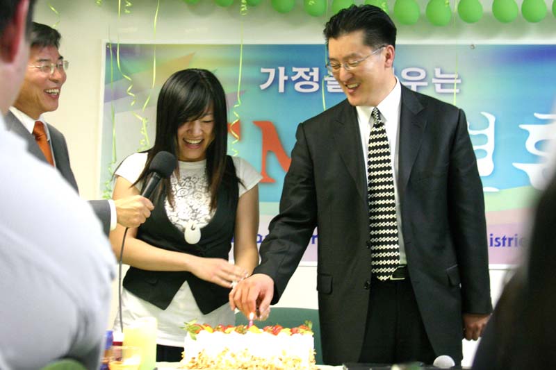 축하 케잌을 cutting하는 Gloria Choo자매와 Keith Park목사
