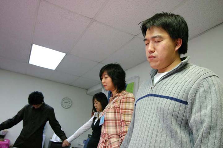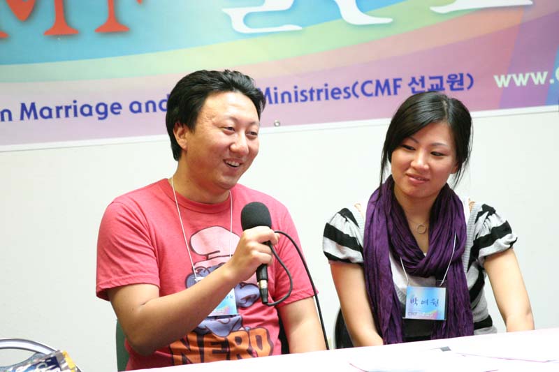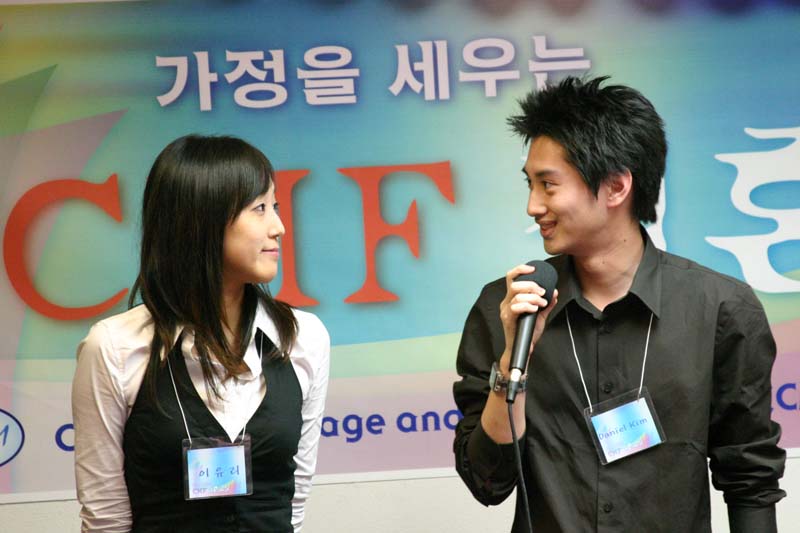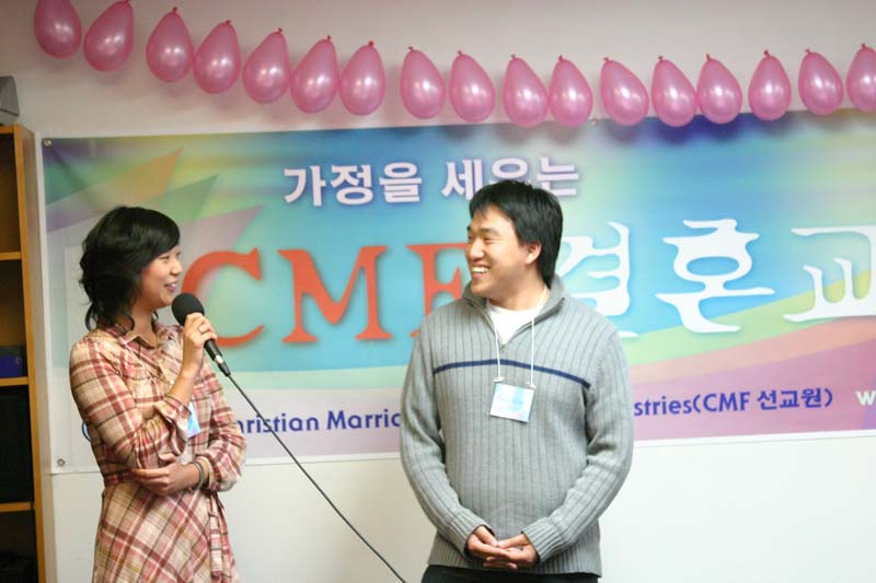 6월 14일 결혼을 작정한 탁영준 형제와 백정원 자매가 서로을 소개 하고 있다