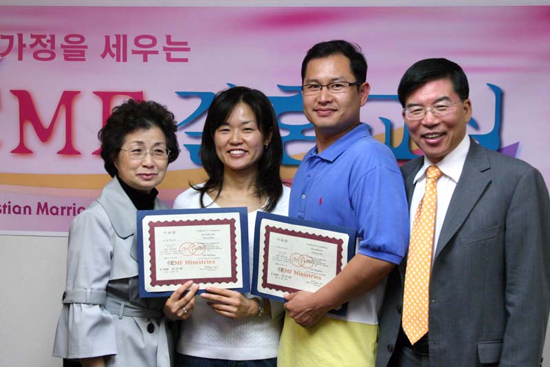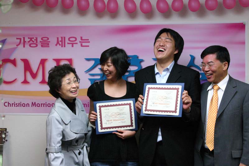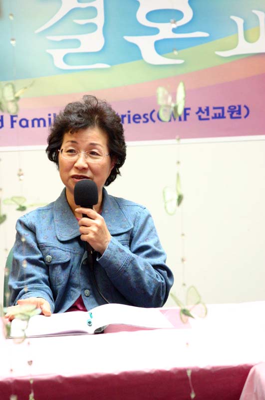수료식에 앞서 축하의 메세지를 전하는 결혼교실 원장 김명자 전도사
