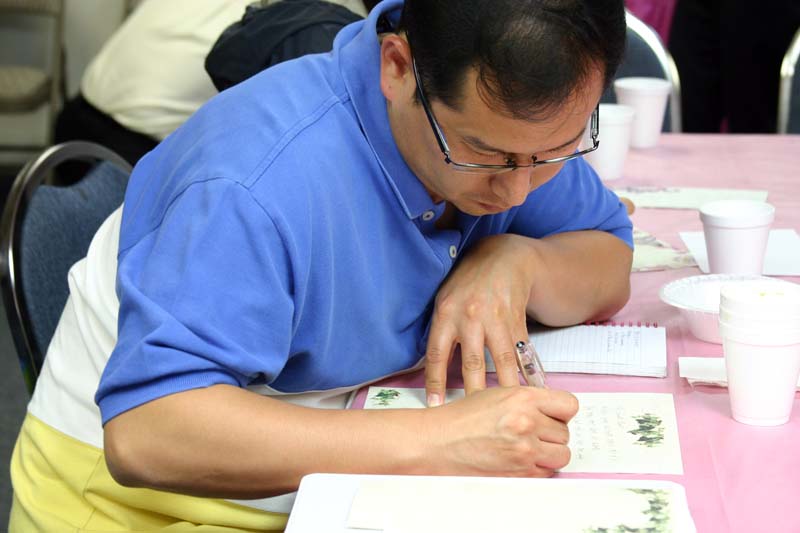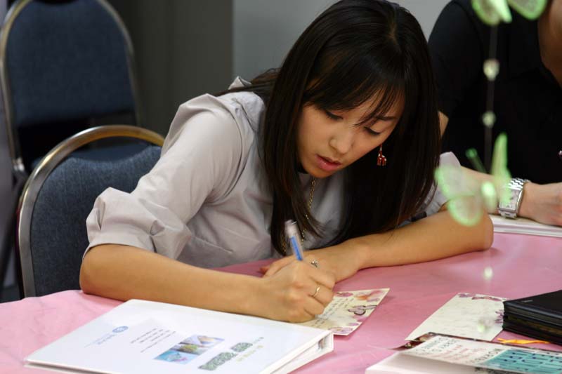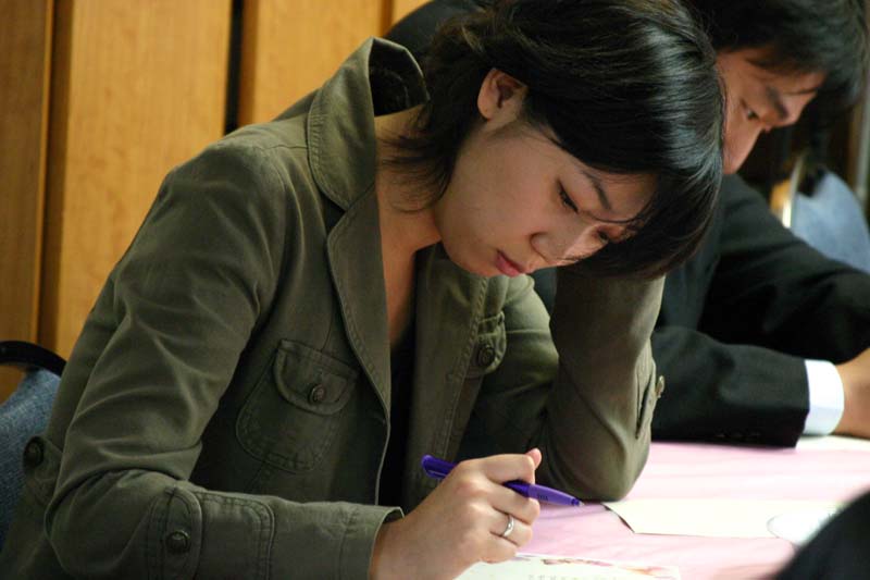 집중해서 편지를 쓰는 유보람 자매