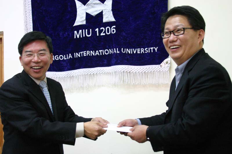 CMF에서 MIU(몽골국제대학)에 장학금을 전달하고 있다.