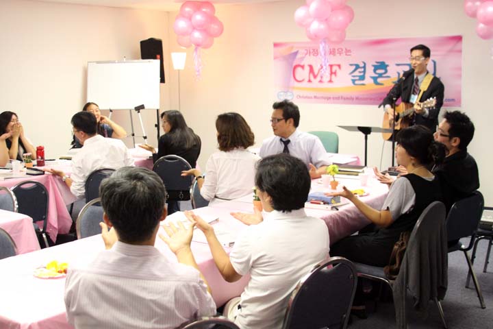 결혼교실 시작하기전 찬양하는 수강자들