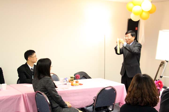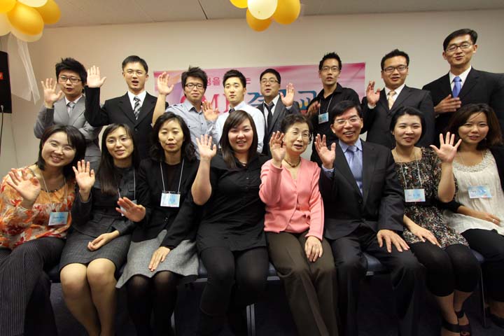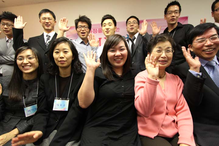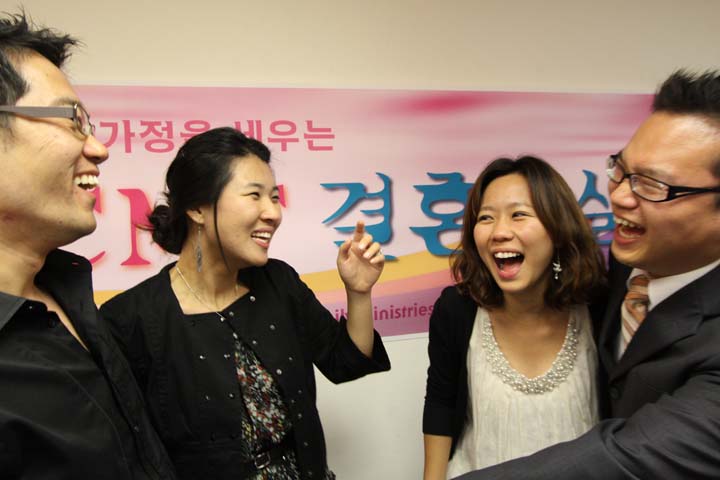 진지하게 강의를 듣고 있는 제임스 박 형제와 김 효규 자매