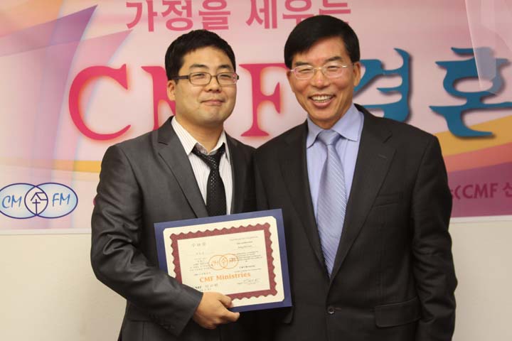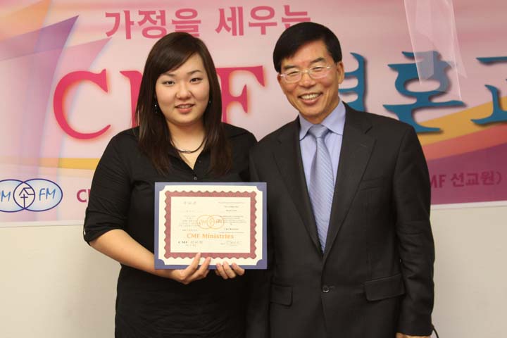 제 82기 CMF결혼교실 수료증을 받는 육동길 전도사
