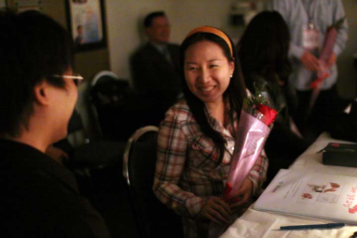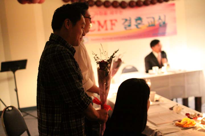 조이스 자매에게 꽃을 전하며 사랑의 표현을 하는 박윤성 형제