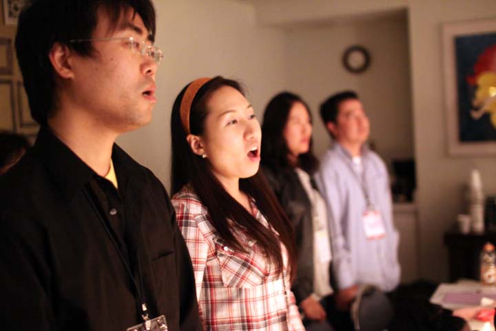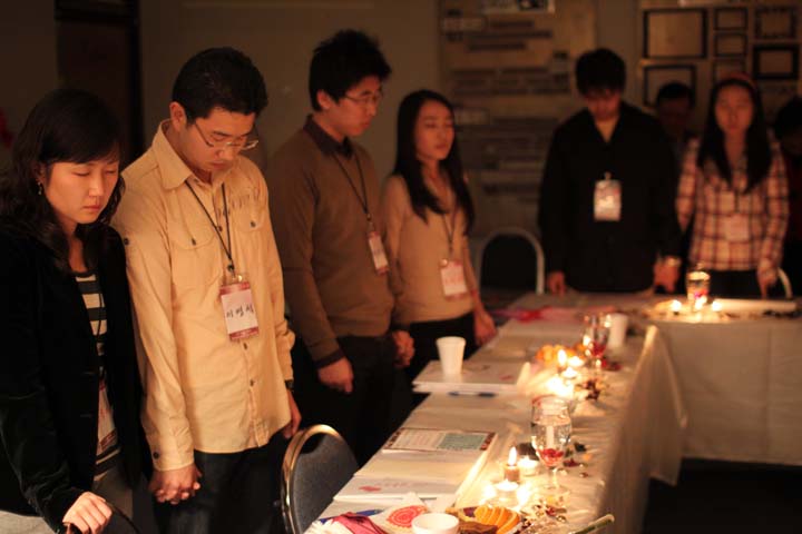 서로의 만남을 준비해주신 하나님께 감사와 찬양을 드리는 참가자들