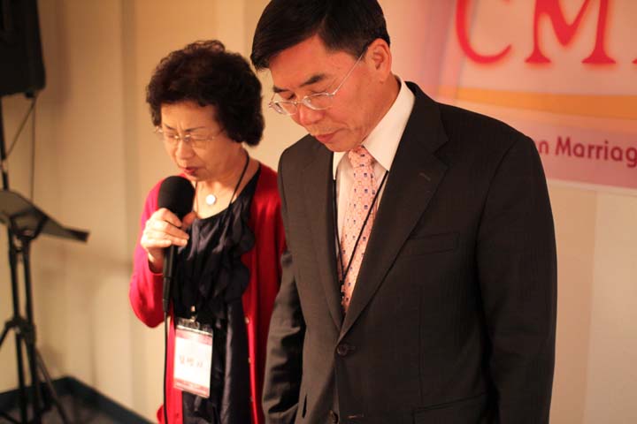 참가자들의 앞날을 축복하며 하나님께 감사기도하시는 김명자 전도사님