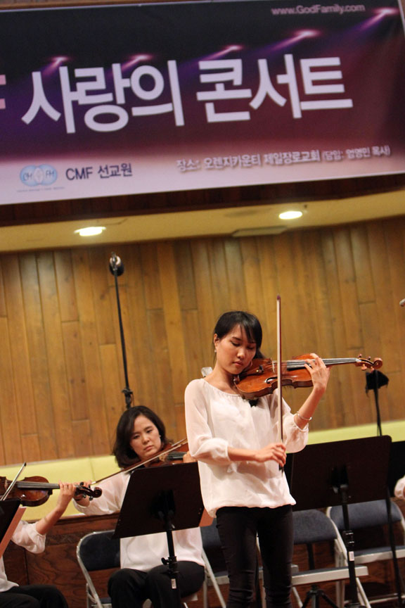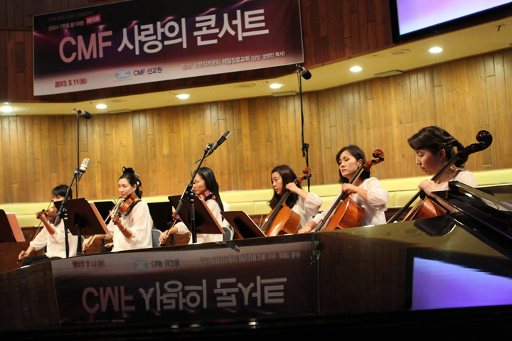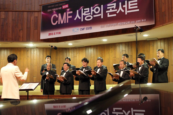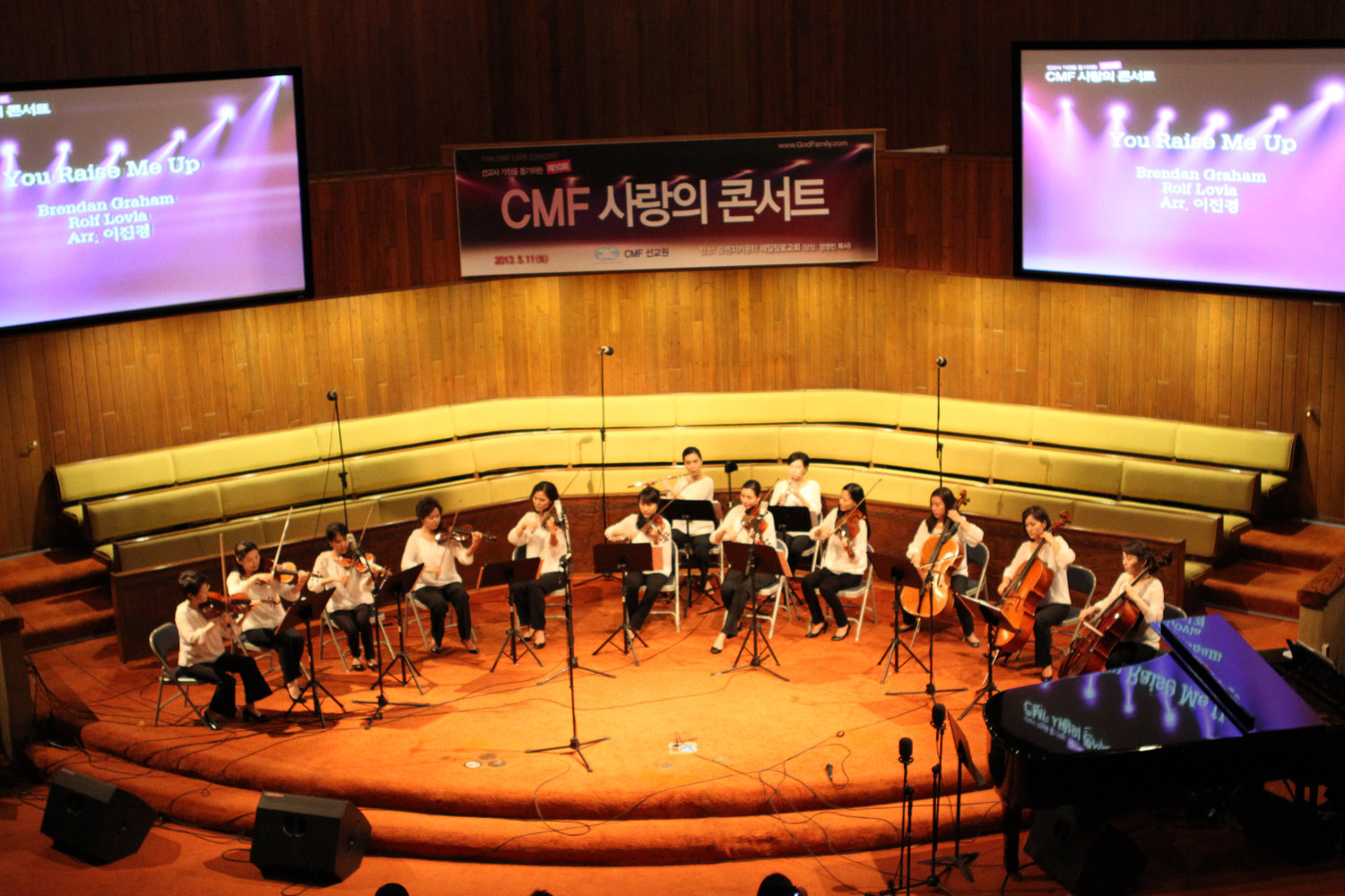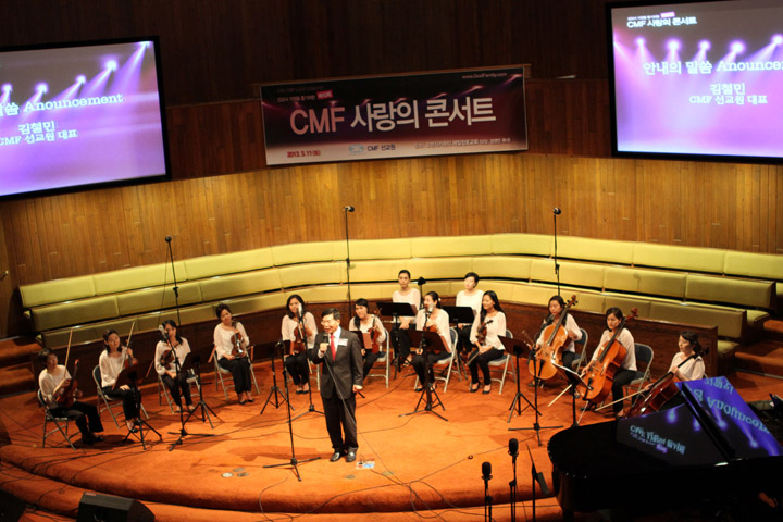선교사가정을 돕기 위한 <제10회 CMF사랑의 콘서트>가 2013.5.11. 6PM에 오렌지카운티제일장로교회에서 열렸습니다. 시편 150편처럼 '소고 치며 춤 추어 찬양하며 현악과 퉁소로 찬양 할찌어다'' 로 하나님의 영광을 드리고 주의 은혜가 충만한 콘서트이었습니다. 오현승자매의 Amazing Grace, Cello 연주로 시작으로 UCLA 학생들로 구성된 Road to Damascus의 젊음이 가득찬 아가펠라찬양들, 또한 Charis Christian Chamber, 에서, Dancing By The Stream’, ‘내가 천사의 말을 한다해도’, ‘축복 하노라’ 은혜로 연주하였습니다. . 그리고LA 숭실OB남성 합창단과 함께한 은혜로운 찬양이 가득한 사랑의 콘서트였습니다. 할렐루야 아멘!