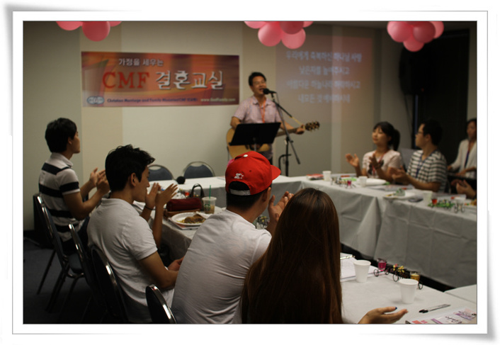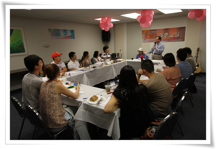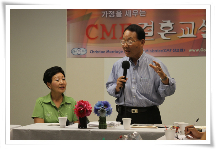 104기 CMF 결혼교실이 2013년 9월 1부터 9월 29일까지 매주일 저녁6시에 CM회관에 갖였다. 매 강의마다 다른 강사들이 결혼과 가정에 대해 귀한 강의를 하여주셨다. 6 Couples들이 참석하였는데 이중 3커플은 결혼을 코 앞에둔 특별한 Couple이다. 세상에 많은 커플들은 결혼식(하루)에 많이 신경을 쓰지만 이번 결혼교실에 참석한 모든Couple들은 지혜로와 하나님이 설계하신 결혼자체에 배우는 모습이 너무 아릅답다. 특별히 하나님이 기뻐하시는 가정은 남편과 아내가 하나가될때(Oneness) 이며, 이것은 하나님께 받은사랑으로 남편은 아내를 죽기까지 사랑하는 것이고, 아내는 남편에게 주께 하듯 순종적인 사랑인것이다.