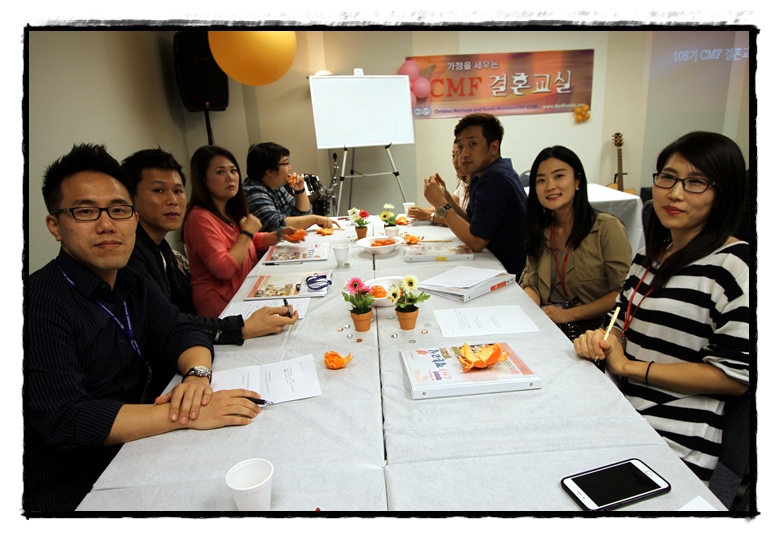 7주간동안 하나님의 만드신 결혼을 배우는 CMF 108기 선남선녀의 모습들이 아름답습니다. 결혼제도가 참으로 신비하고 놀라운것은 결혼을 통해서 서로가 그리스도의 성숙으로 거룩하여 진다는 것입니다. 오직 반석이신 예수그리스도를 주인으로 삼아 진정한 행복한 가정을 만드시길 바래요. 할렐루야 사랑합니다. 축복합니다.