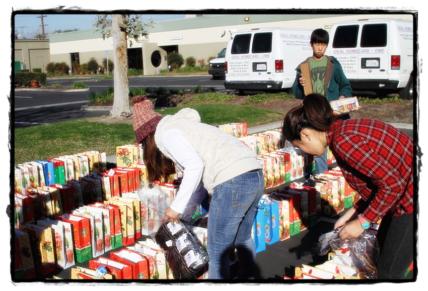 CMF에서 올해의 마지막 사역으로LA에 있는 노숙자들에게 사랑의 선물을 나눌수 있는 은혜를 허락하셨습니다. 올해도 변함없이 500개의 사랑의 선물보다리를 준비하여, LA down town에 있는 많은 노숙자들을 찾아 골목길 골목길 운전하며 다니면서 나눔의 축복을 주셨습니다. 우리를 구원하시러 오신 예수님의 탄생을 맞이하여 소망없는 저들에게 생명의 떡이요 참망되신 예수님을 전할수있어 기쁨을 오히려 저희들에게도 주심을 감사합니다. 특별히 MK들의 간증을 통해 주님이 이 사역을 얼마나 기뻐하시는지를 확인할수가 있었습니다. 할렐루야!!