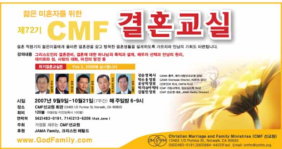 관심있으신 분은 CMF 사무실 (562) 483-0191 Jane에게 연락하시기 바랍니다.