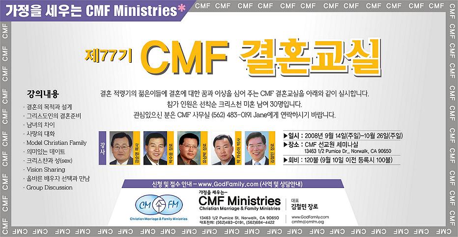 제77기 CMF 결혼교실이 아래와 같이 실시합니다.