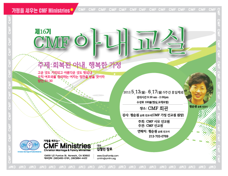 제16기 CMF 아내교실을 다음과 같이 실시합니다